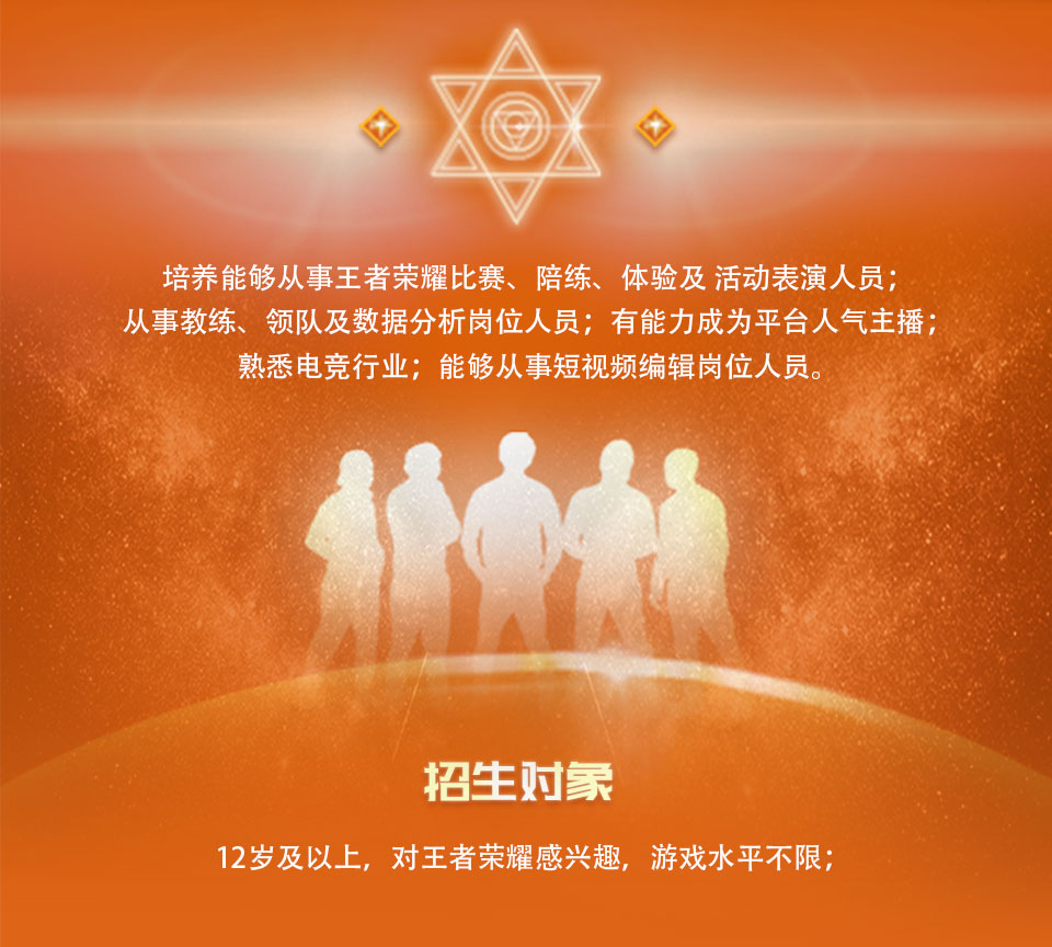 优秀同学入选我校电子竞技队接受职业选手训练 真实感受职业选手的高强度训练,高标准要求 参加校内和校外的专业电竞比赛 训练达到职业选手标准,推荐到电竞俱乐部